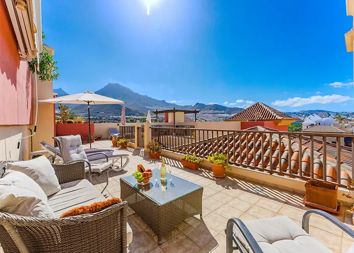 Terrazas Del Duque II Apartment 阿德耶的面积为195平方米,设有室外游泳池,天井和屋顶游泳池. 这间公寓方便客人前往公爵广场购物中心,距离Golf Costa Adeje球场不到2.2公里.